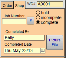 Tip: At the same time that you return to your computer to mark the job as completed, it is recommended that you record the employee name in the Completed by field and enter the Completed Date. These fields are used in separate reports which help to track how long orders take to be completed and who is completing them.