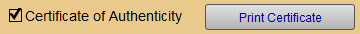 The Certificate of Authenticity checkbox is used to indicate that a certificate is available for the artwork shown.