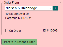 Green X removes the vendor ID number from the Order From field. ID# is the vendor Identification number auto-filled from theContacts file.