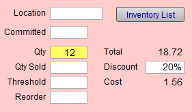 If you receive a discount when purchasing this inventory, then enter the percentage in the Discount field. The total will be based on the discounted Cost shown.