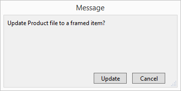A dialog box appears asking if you wish to update Product file to a framed item. If a different dialog appears asking you to convert, then you have not chosen any artwork.