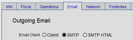 Look for the Email Client radio buttons. There are three options: Client, SMTP and SMTP HTML.