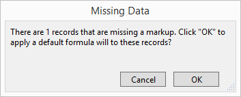 There are ## records that are missing a markup. Click "OK" to apply a default formula to these records?
