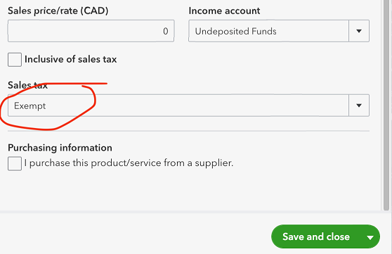 In QuickBooks Online, make sure you set the item's Sales Tax as "Exempt".