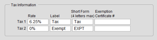 Tip: To see your Tax 1 or Tax 2 settings, go to the Main Menu, click Setup Data, and open the Fiscal tab.