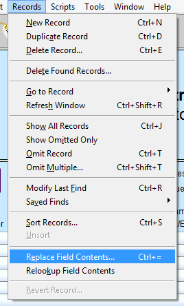 In the menu bar, click Records and choose Replace Field Contents.