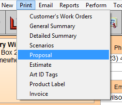 In the menu bar, click Print and then select Proposal.