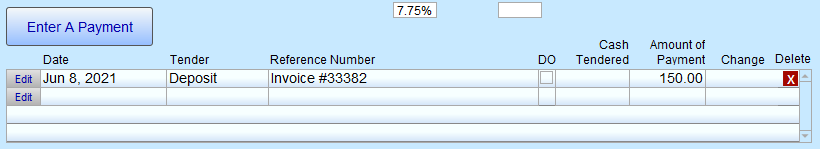 Click the Enter a Payment button to take a payment equal to the amount of the deposit.