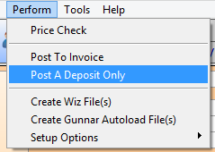 From the Work Order, in the menu bar, click Perform and choose Post a Deposit Only.