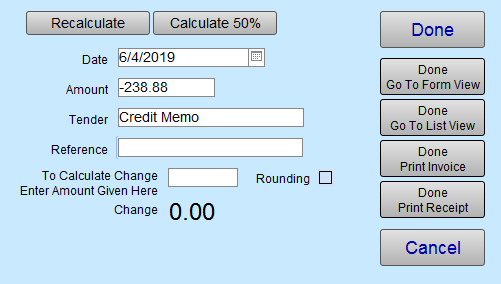 Tip: Take note of the Invoice number, customer name and item sold on this credit memo Invoice. Or print out the Invoice as you will be entering them onto the new Invoice to reclaim the taxes and zero out the 'credit memo'.