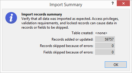 Click the Export to Records button. The import process may take some time.