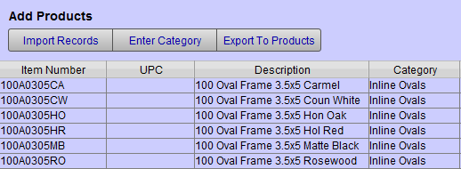 The Add Products feature offers an easy way to import or update a large number of retail products (readymade frames, giftware, art, etc.).