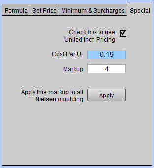 Go to Price Codes > Moulding and open the Frame Pricing tab.