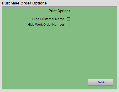 Controls whether or not the Work Order number is shown on the printed Purchase Order.