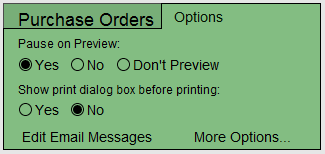 On the Main Menu, in the Purchase Orders section, open the Options tab.