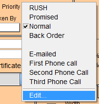 Other options which can be selected are: Rush, Promised and Back Ordered. These selections do not affect the price of the order but do allow you to track and rank your orders by importance.