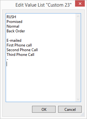 The Edit Value List dialog appears.