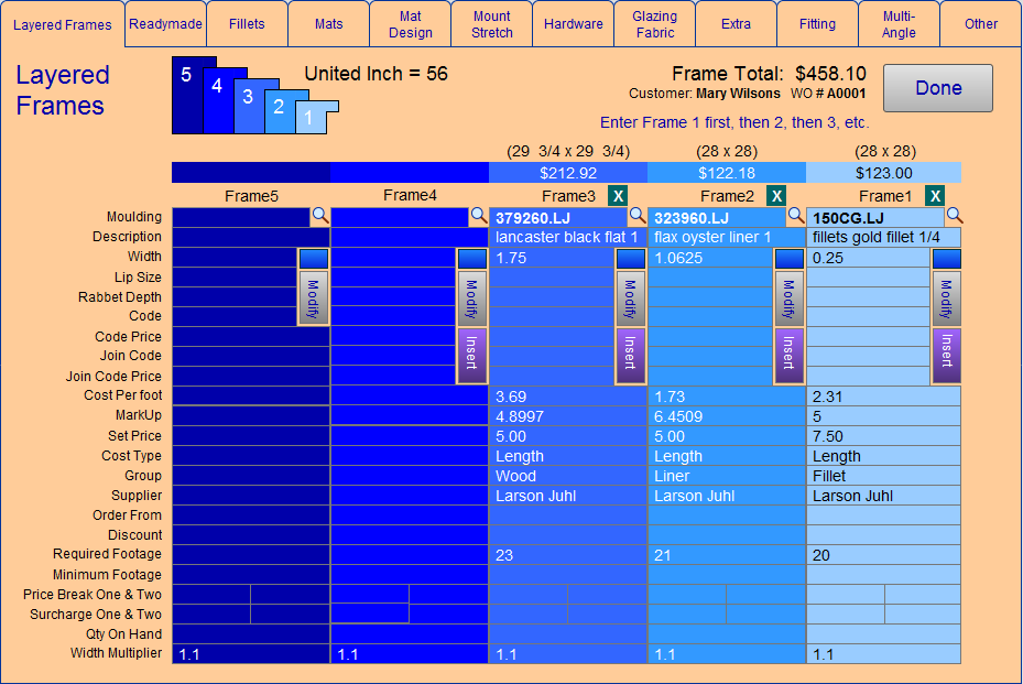 Use the Layered Frame feature to price up to five frames.