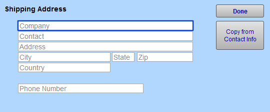 If the shipping address is the same as the customer's address (already added into FrameReady), then click the Copy from Contact Info button. Click Done.