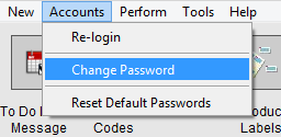 From the Main Menu, in the menu bar, click Accounts and choose Change Password.