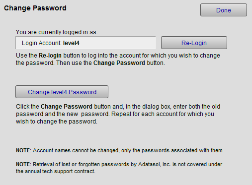 Note: Account names cannot be changed, only the passwords associated with them.