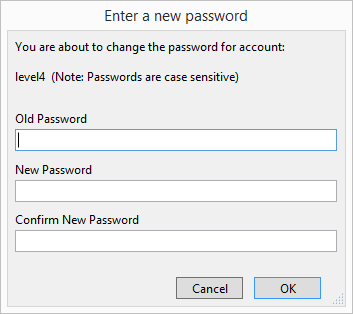 Enter the old password, the new password and confirm new password. Click OK.
