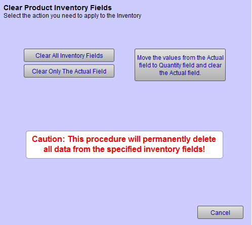 Sometimes you may need to remove the data in the inventory fields in the Products file. Rather than delete each field individually, you can clear all of the fields at once.