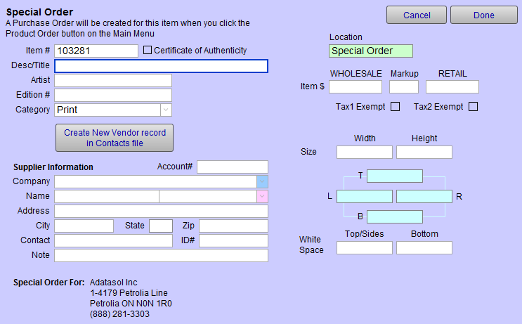 Allows you to order a product or piece of artwork and simultaneously put it on a Work Order.