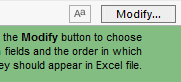 Use the Modify button (in the FileMaker menu bar) to choose which fields to send as well as the order they appear in the Excel document.