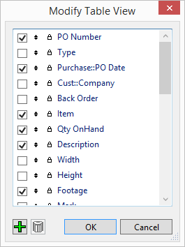 The Modify Table View dialog appears.