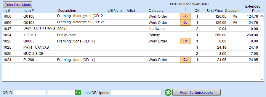 Locates the associated Work Order so you can verify materials, dimensions or make changes to the order (or duplicate or create another for this customer).