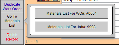 2) A button for the Materials List for the current Job Number (all Work Orders belonging to that job).