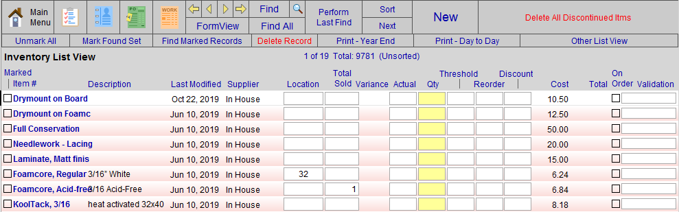 When generating a Frame Order, FrameReady searches for items where the quantity is less than the amount in Threshold. This trigger value will automatically add a line to the Purchase Order for the vendor specified in Order From field.