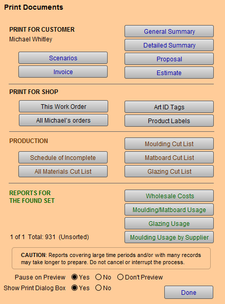 If you have selected to see a print preview in your Work Order Defaults, then click Continue to move to the Print Options Menu to select your printer.