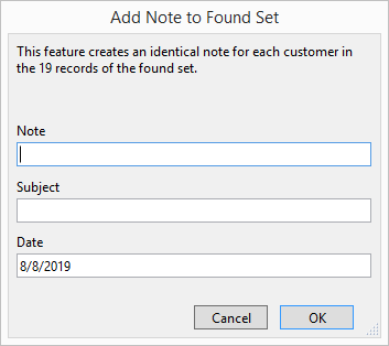 In the Note field, enter in a note to describe this mailing, e.g. Email Spring Sale and, optionally, add a Subject. Click OK.