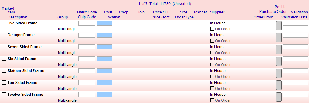 After set up, simply choose the appropriate entry from the Multi-Angle field in the Work Order and the price of the framing components scales up.