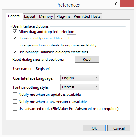 In the top menu bar, click FileMaker Pro and choose Preferences.