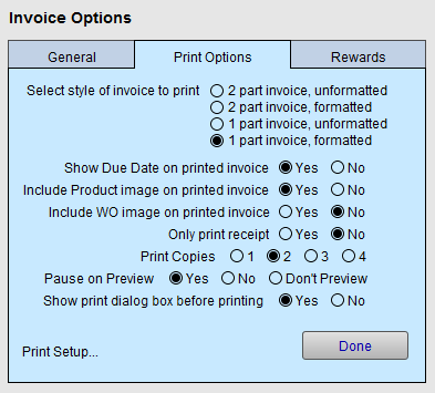 If you wish both print buttons to only print a receipt, then set Only print receipt to Yes, otherwise leave as No. -