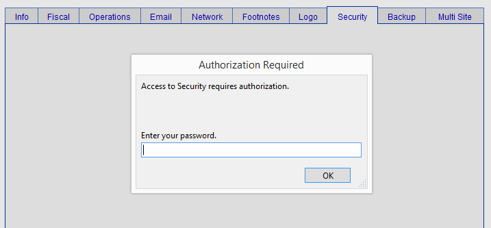 On the Main Menu, click the Setup Data icon and open the Security tab.