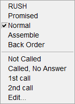 Other options which can be selected are: Rush, Promised and Back Ordered. These selections do not affect the price of the order but do allow you to track and rank your orders by importance.