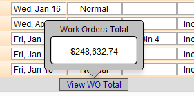 Displays the dollar total of all the Work Orders in List View.