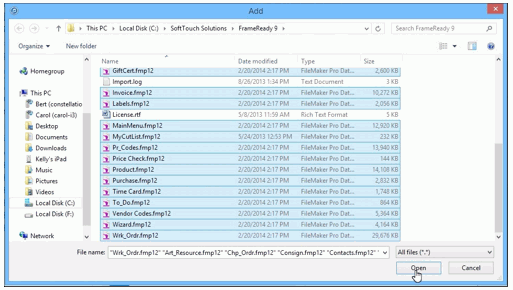 Important: There is no support in iTunes to synchronize the changes made in FrameReady on the iPad with the FrameReady files on your computer.