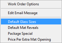 Select Setup Options and then select Default Glass Sizes.