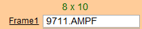When preparing a Work Order, the suggested glass size appears in green text, above the Frame1 field, i.e. 8x10