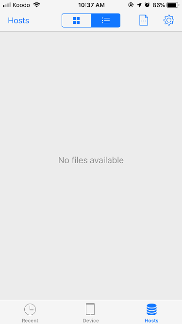 If the message "No files available" appears, then tap the blue Hosts text button (top left).