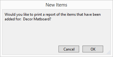 Print Report of items added: Cancel (or OK)