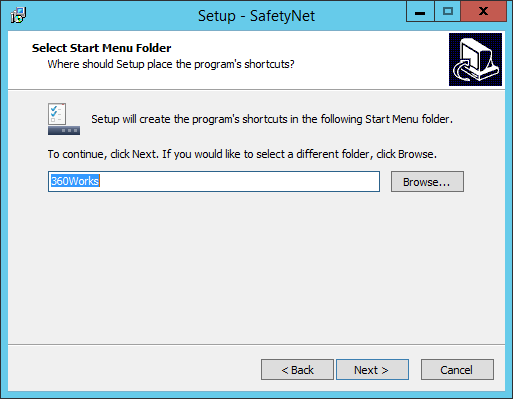 In the "Select Start Menu Folder," leave as default and choose Next.