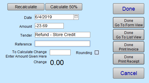 In the Tender field, select Refund – Store Credit or whichever method you will use to refund the customer.