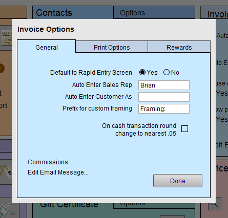 The Invoice Options window appears.