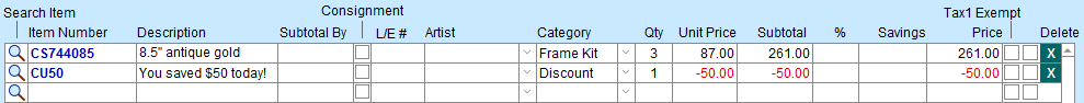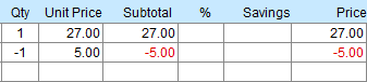 Unfortunately, the amount does not show up in the Savings line, but the Subtotal and Taxes are calculated correctly.